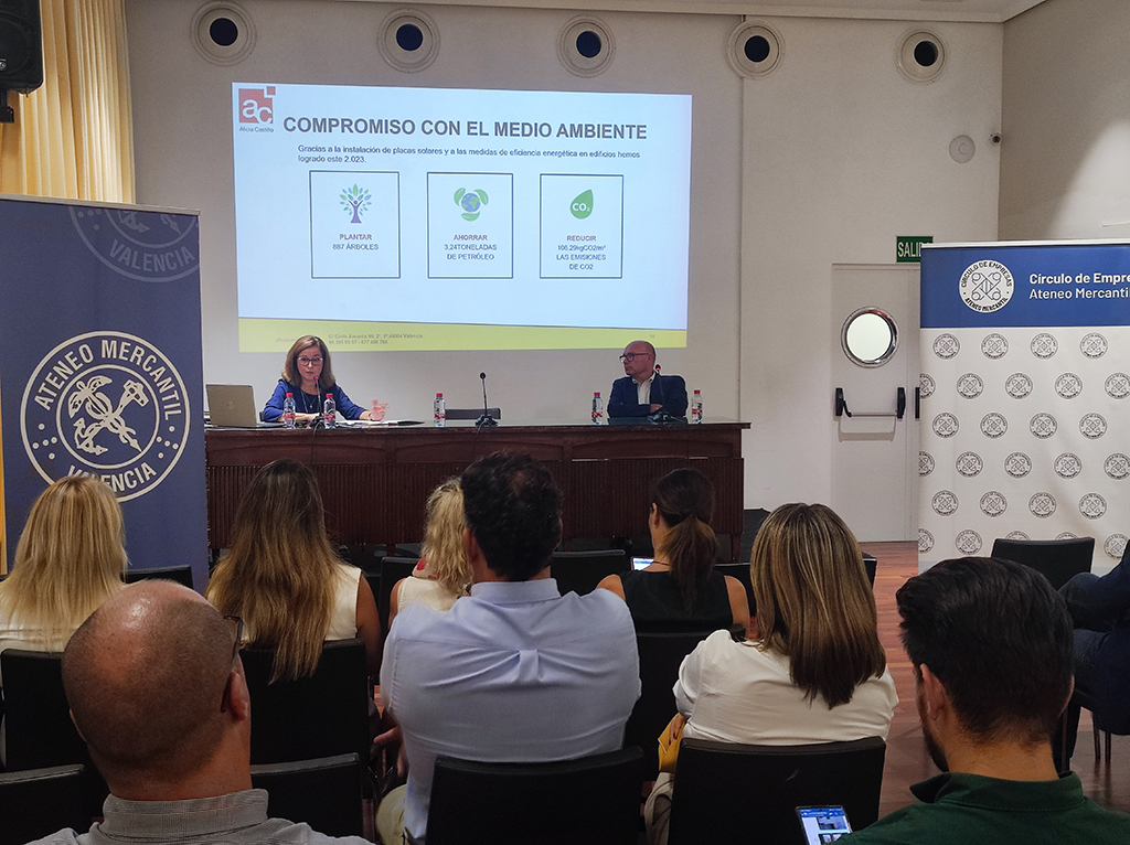 Posteriormente, en la reunión mensual, ALICIA CASTILLO LLORENS nos ha explicado el servicio inmobiliario integral que ofrece su empresa Administración de Fincas Urbanas Alicia Castillo, que actualmente también está incursionando en la administración de polígonos industriales para acompañar a estas entidades en su proceso de modernización hacia el modelo de EGM.